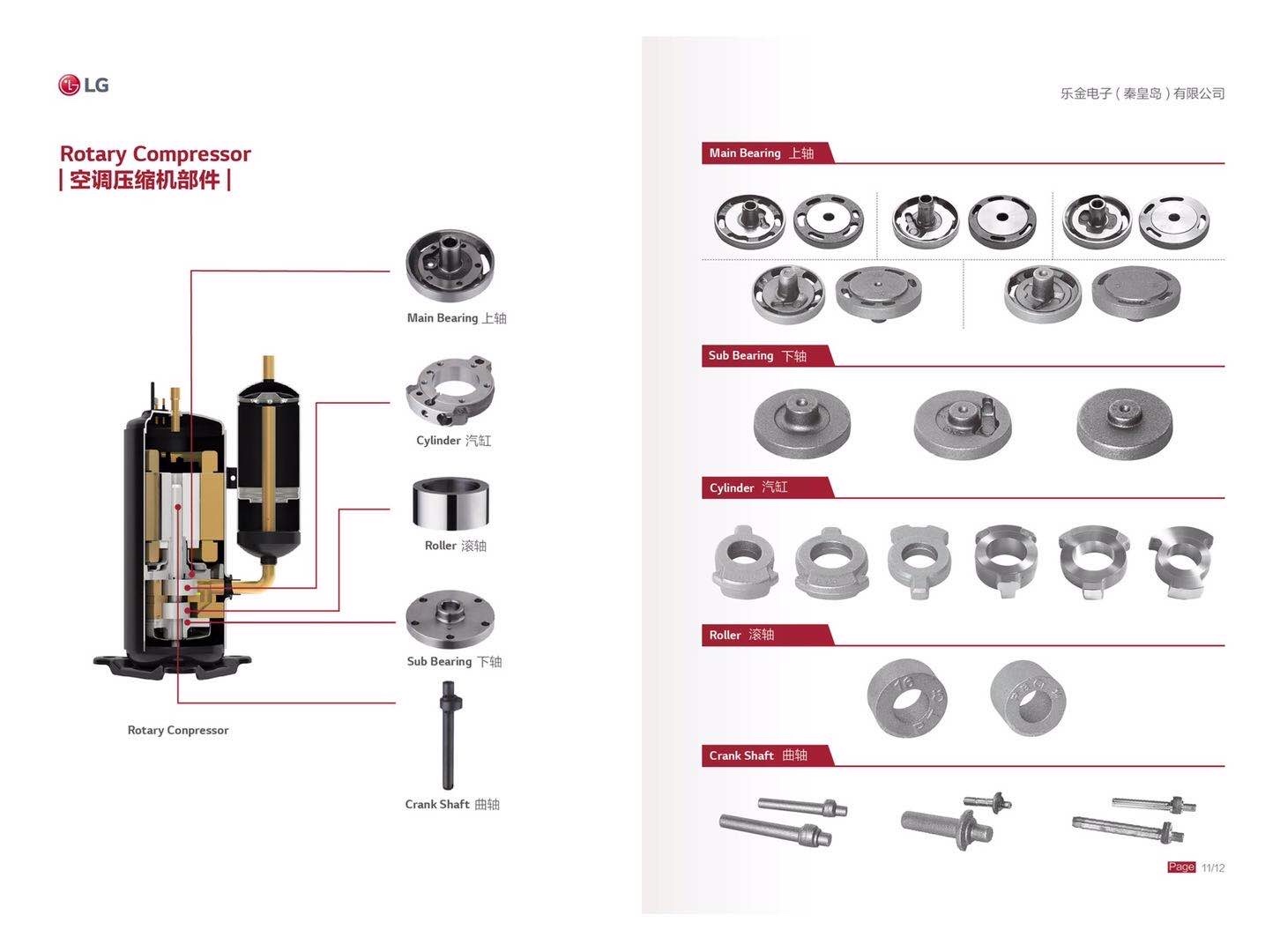 LG Electronics Qinhuangdao Inc.气缸、曲轴、上法兰、下法兰、活塞、气缸架、皮带轮、压盘、飞轮、支架、油泵壳体 |